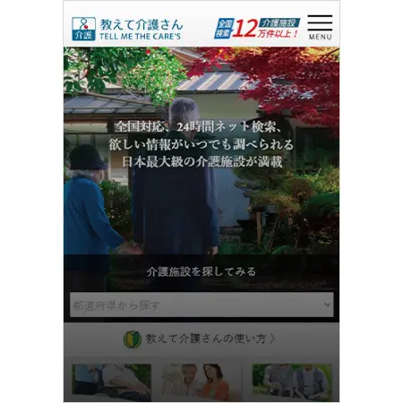 豊富な情報が掲載された全国の介護施設リスト12万件以上から、あなたの希望の介護施設を見つけることができます。また、介護資格取得のコンテンツや、求人情報、豊富なお役立ち情報など、あなたが知りたい介護施設探しを徹底サポートします。