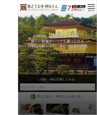 豊富な情報が掲載された全国の寺院・神社さんリストから、あなたの希望の寺院・神社を見つけることができます。また、季節ごとの特集コンテンツや、豊富なお役立ち情報、全国の寺院・神社・神宮・宮・大社の観光名所の紹介など、あなたが知りたい寺院・神社探しを徹底サポートします。
